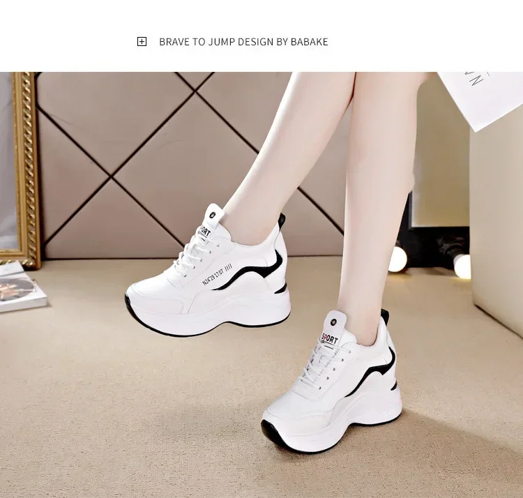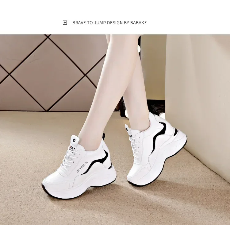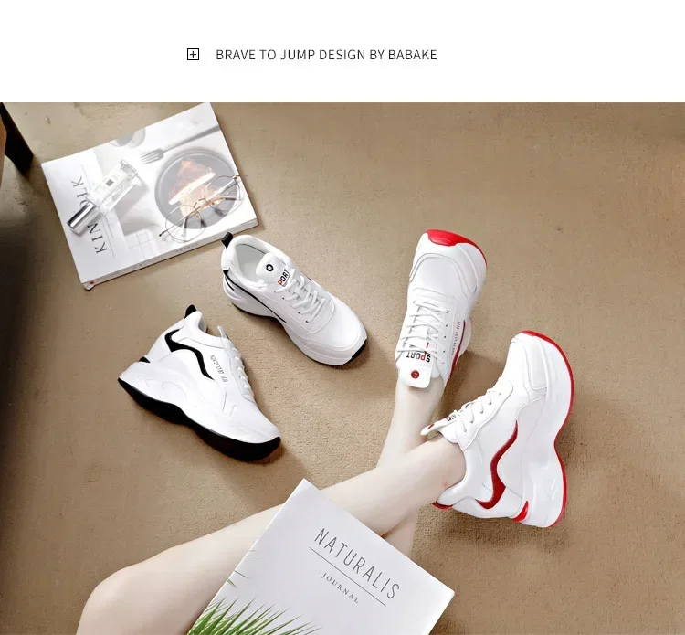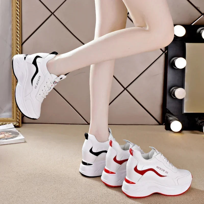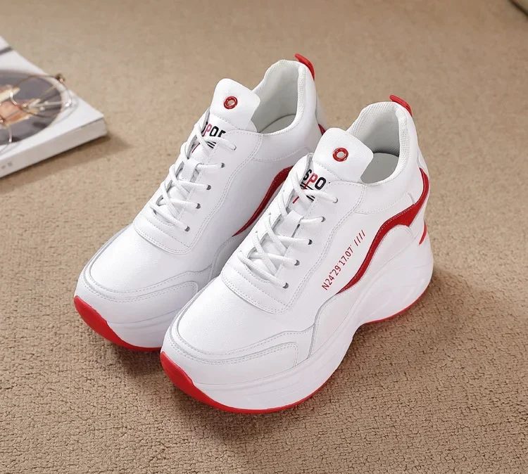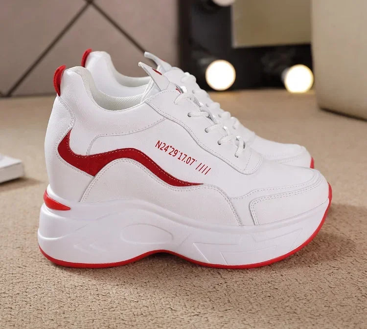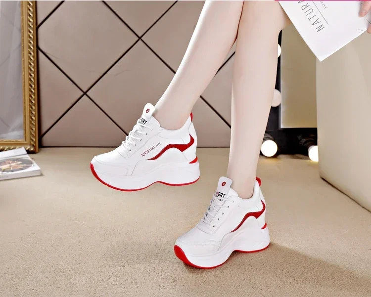 2025 New High Heels Wedge Outdoor Sport Spring White Shoes Breathable Casual Shoe Women Leather Platform Sneakers Red