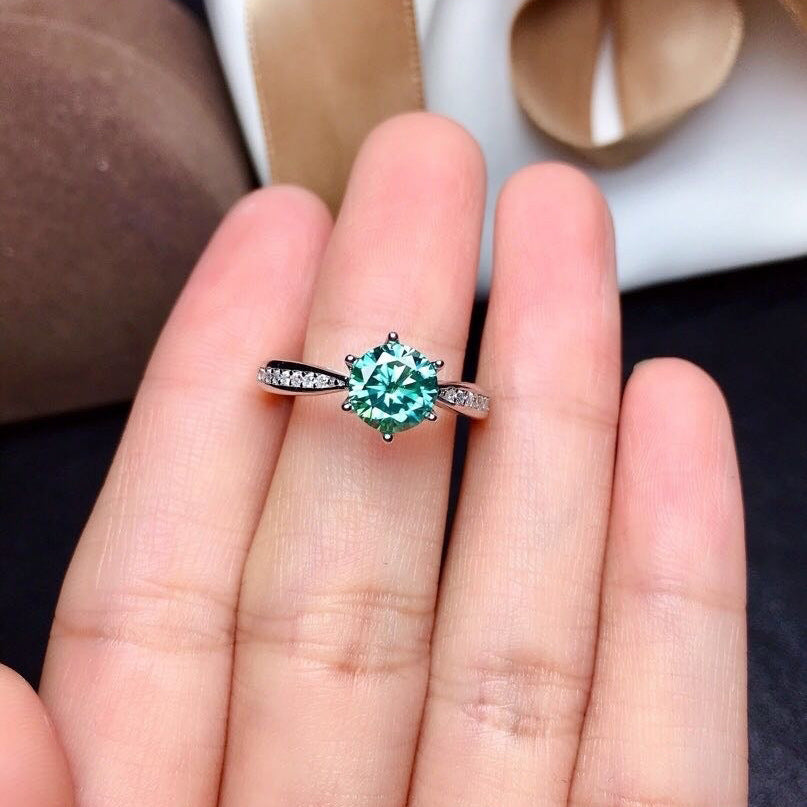 Green blue Solitaire Ring for Women Solid 925 Sterling Silver Rings Round Moissanite Diamond for Wedding Engagement Fine Jewelry