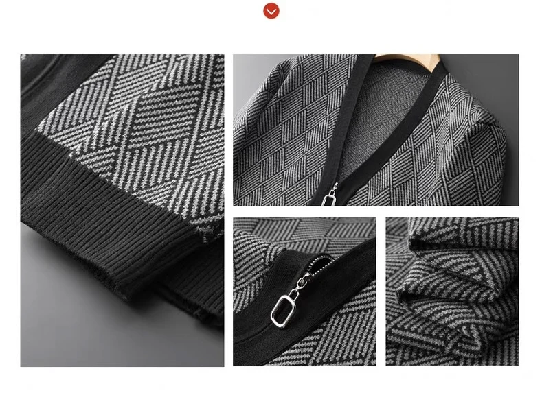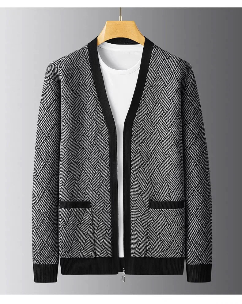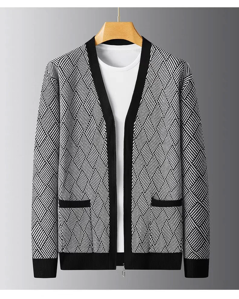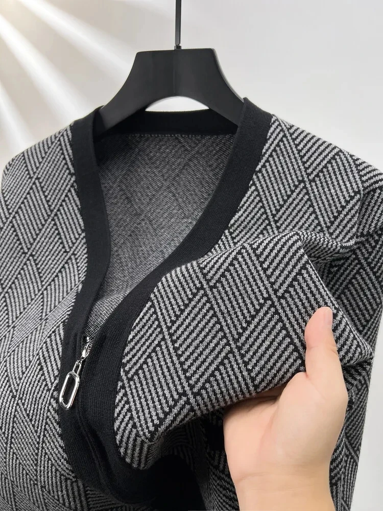 Luxury brand men's V-neck knitted sweater autumn winter new fashion boutique zipper European design high-end shawl casual coat