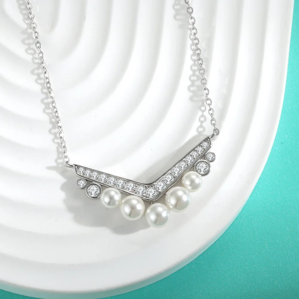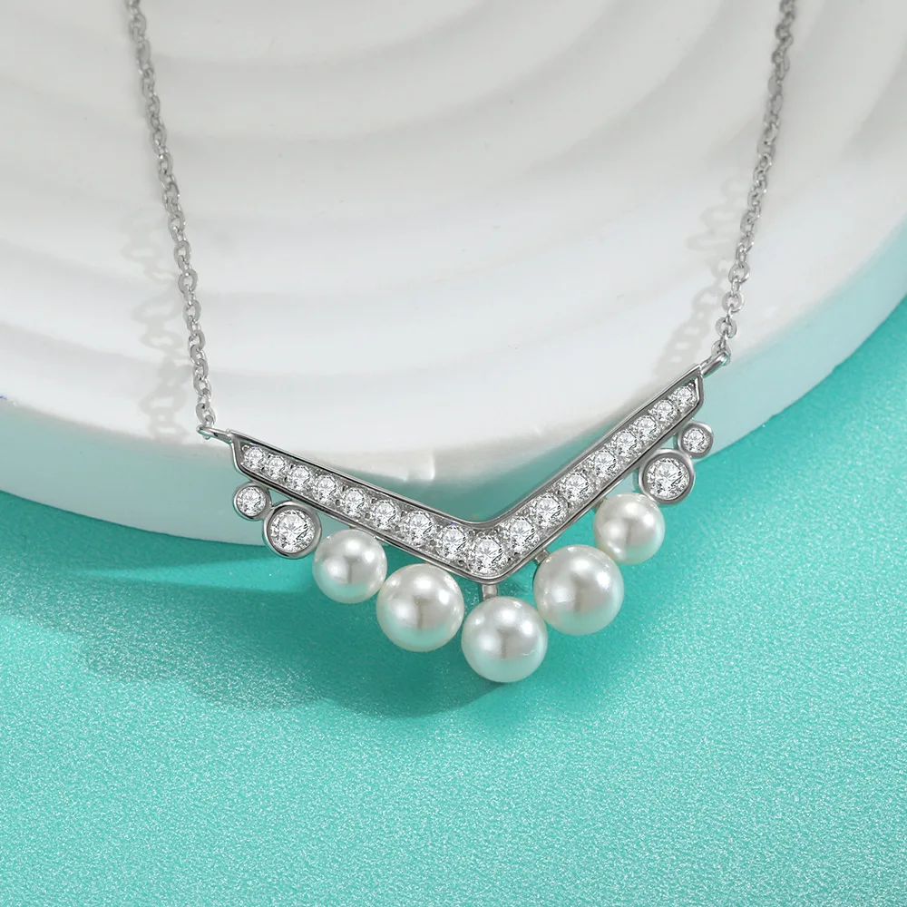 Luxury Pearl Moissanite Pendants Necklace For Women S925 Sterling Silver 18K Gold Plated Diamond Chain Wedding Gifts Jewelry