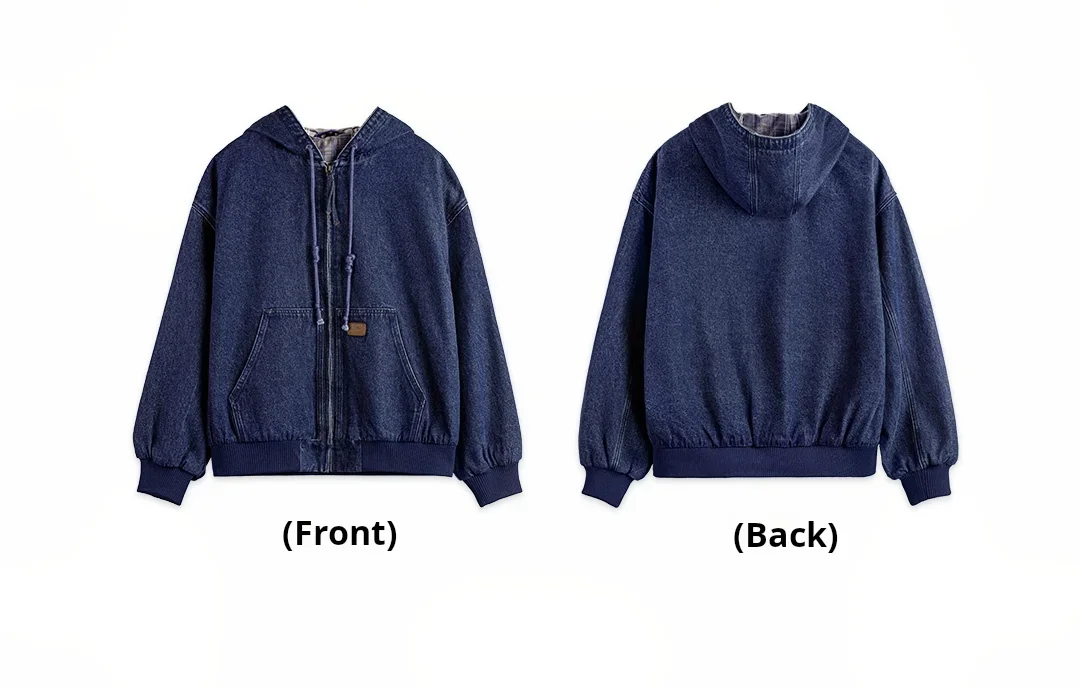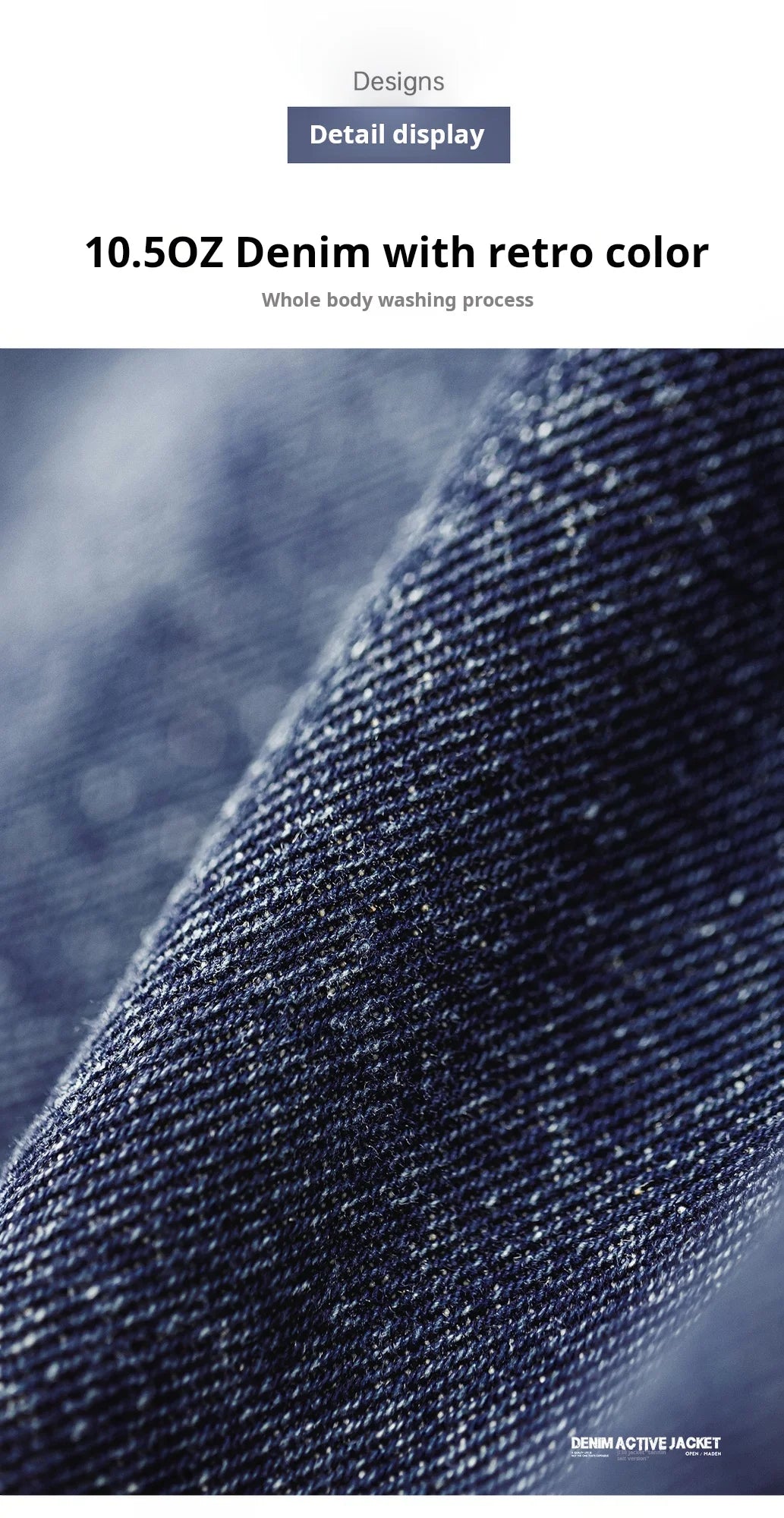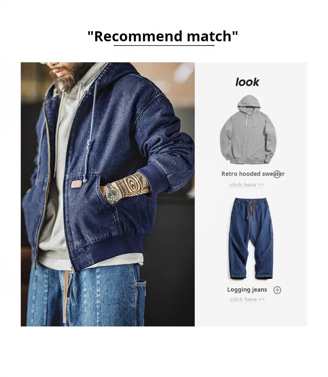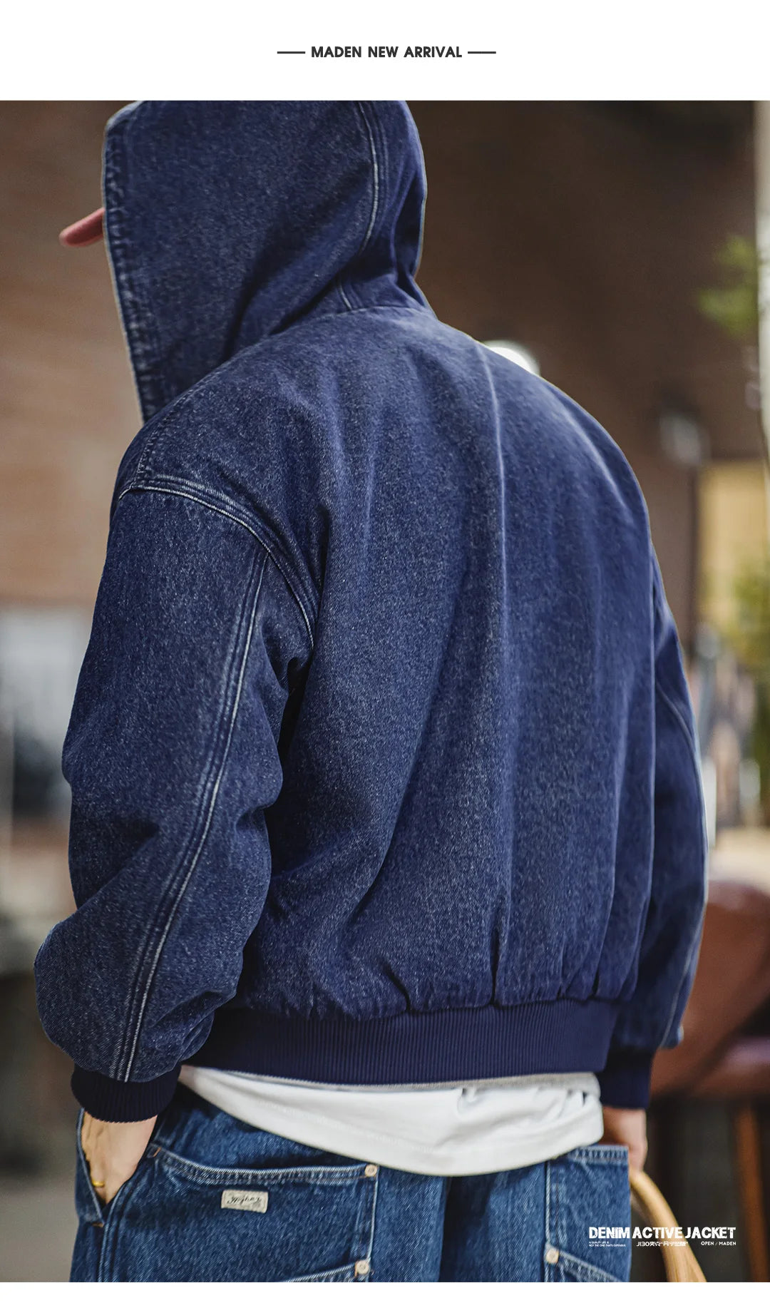 Maden Men's Retro J130 10.5oz Denim Jacket Heavyweight Washed Hooded Jacket Regular Fit Zip Workwear Coat with Pockets for Fall
