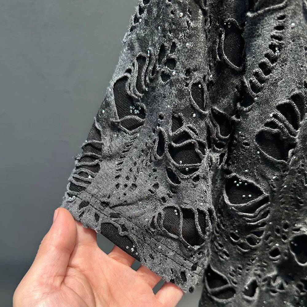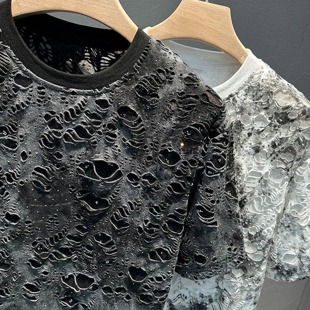 Mens T-Shirts Casual Tie-Dye Ripped T-Shirts Summer Niche Lightweight Unique Versatile Fashion Short Sleeve Tops Men'S Wear 2024