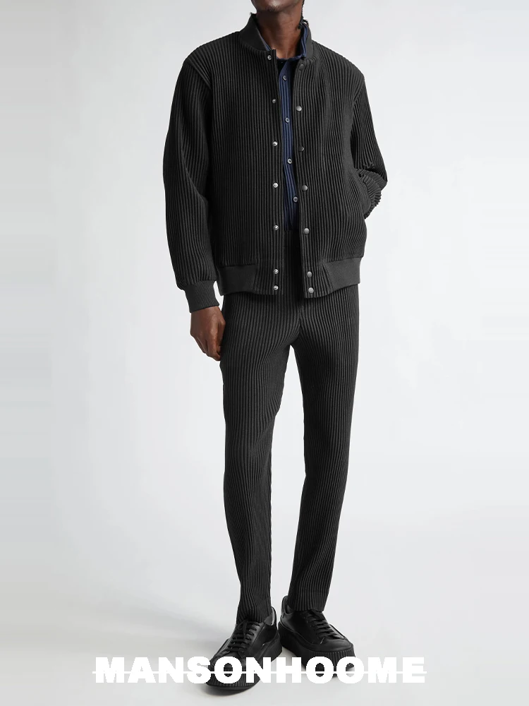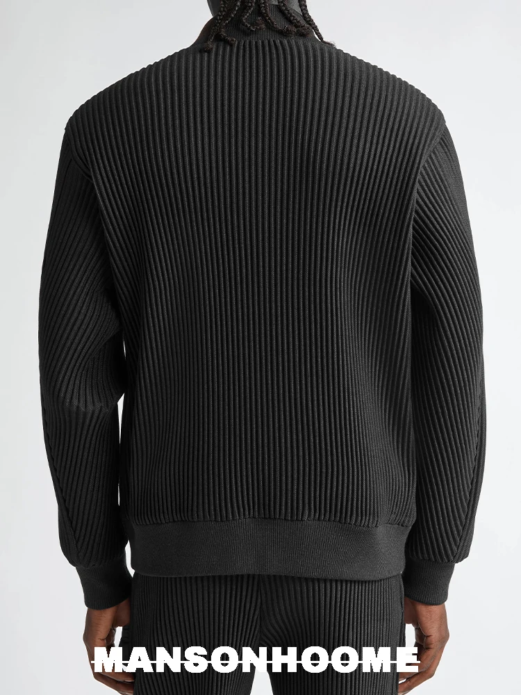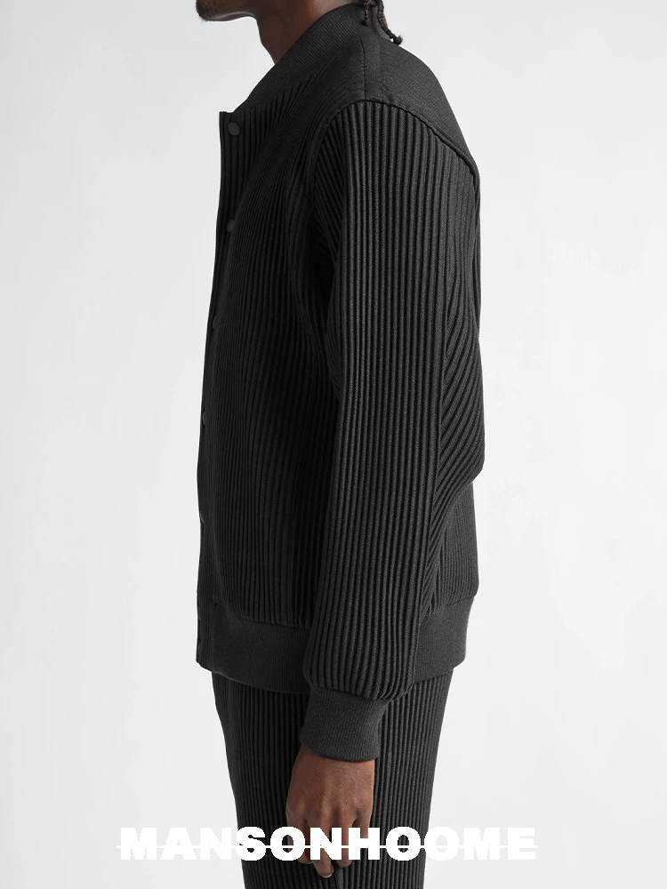 Miyake Pleated Homme Plisse Single Breasted Cardigan Ribbed Jacket Men