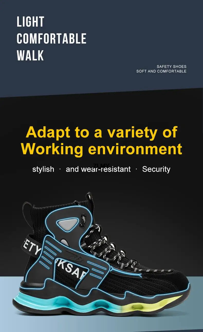 New Design Safety Shoes Men Work Sneaker Steel Toe Shoes Puncture Proof High Top Work Safety Boots Male Lightweight Work Shoes