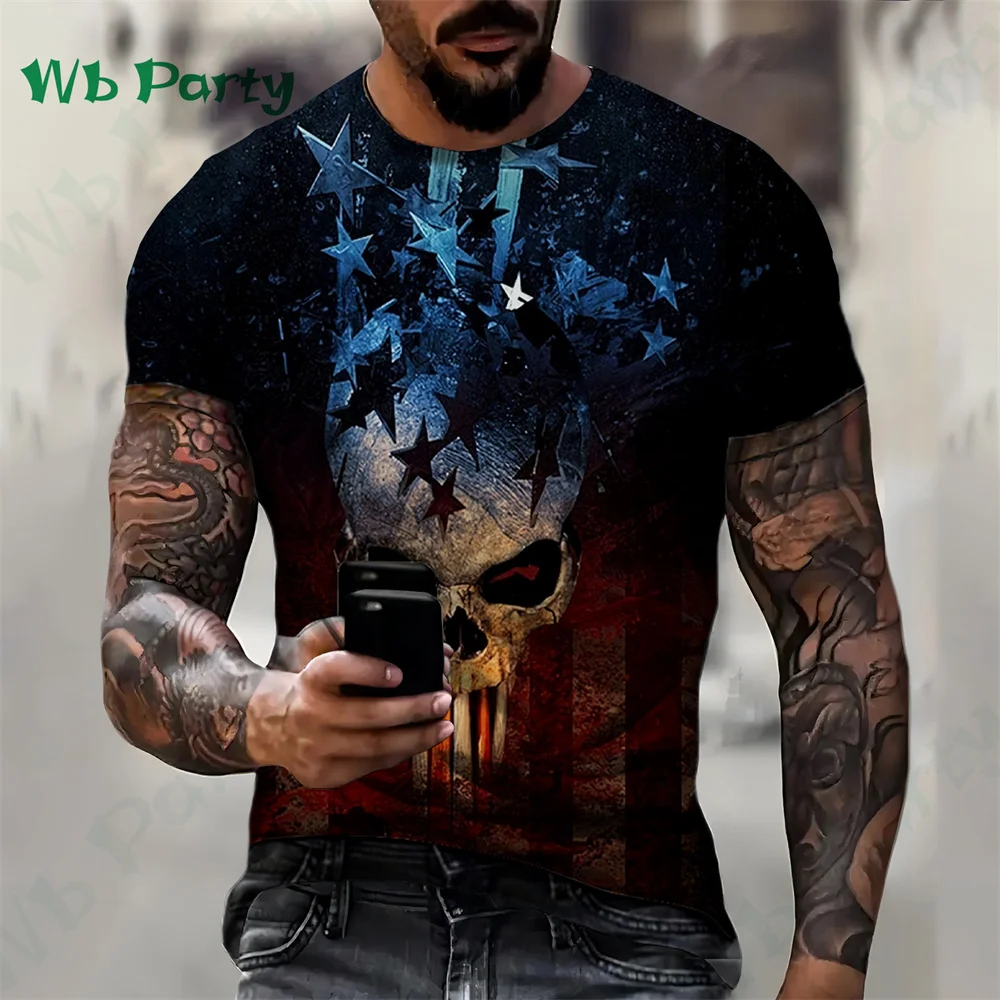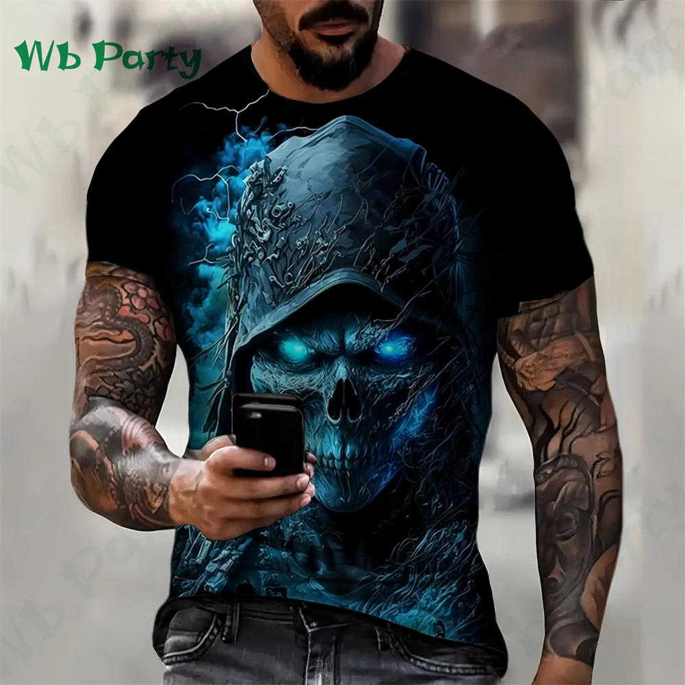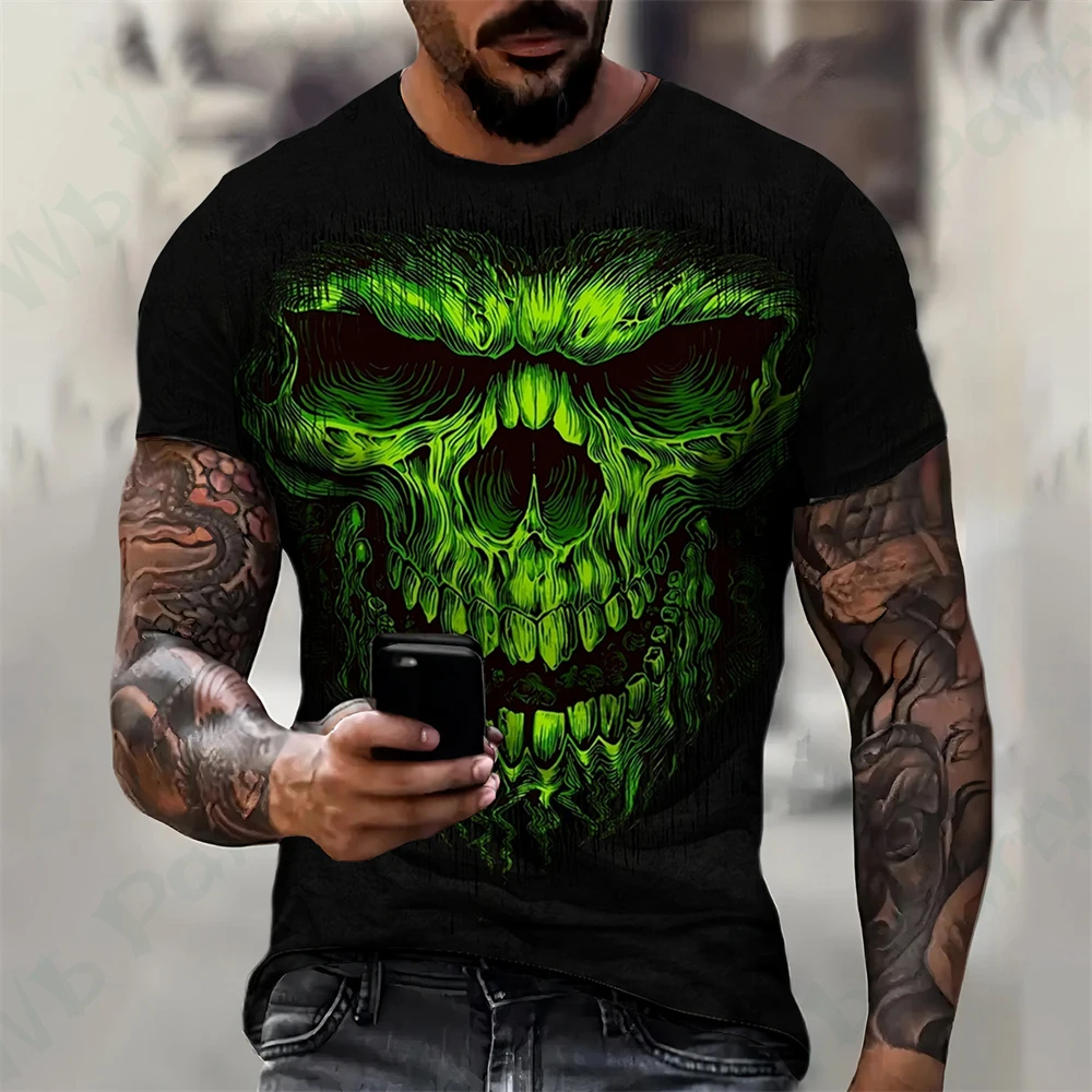 Oversize T-shirts Skull Print Compression Shirt Skull Graphic T shirts Men's Summer Clothes Oversize T-shirt Oversized T-shirt