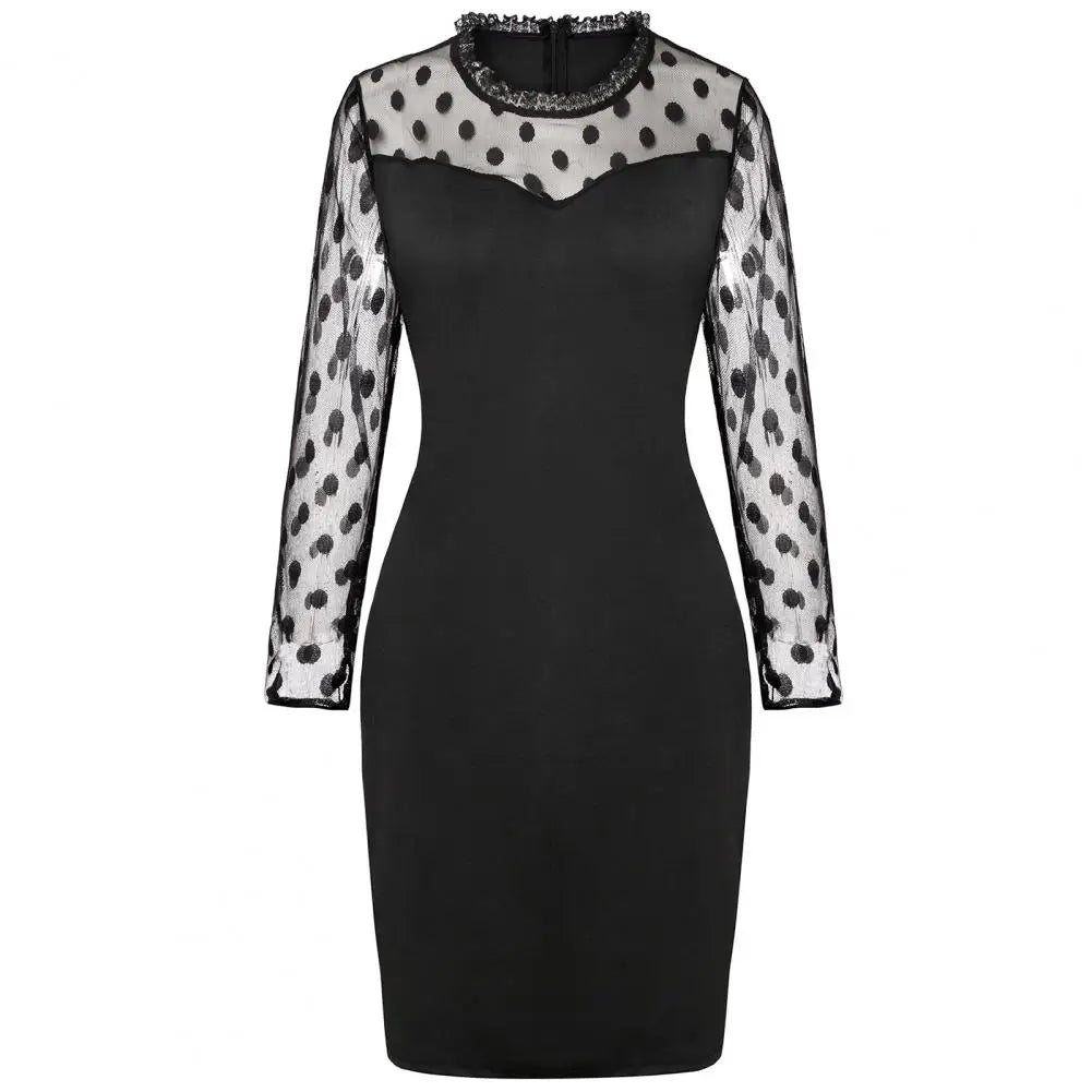 This dress has a slim fit design that can show your body curves; and it has a polka dot mesh long sleeve design that can make your outfit more fashionable.