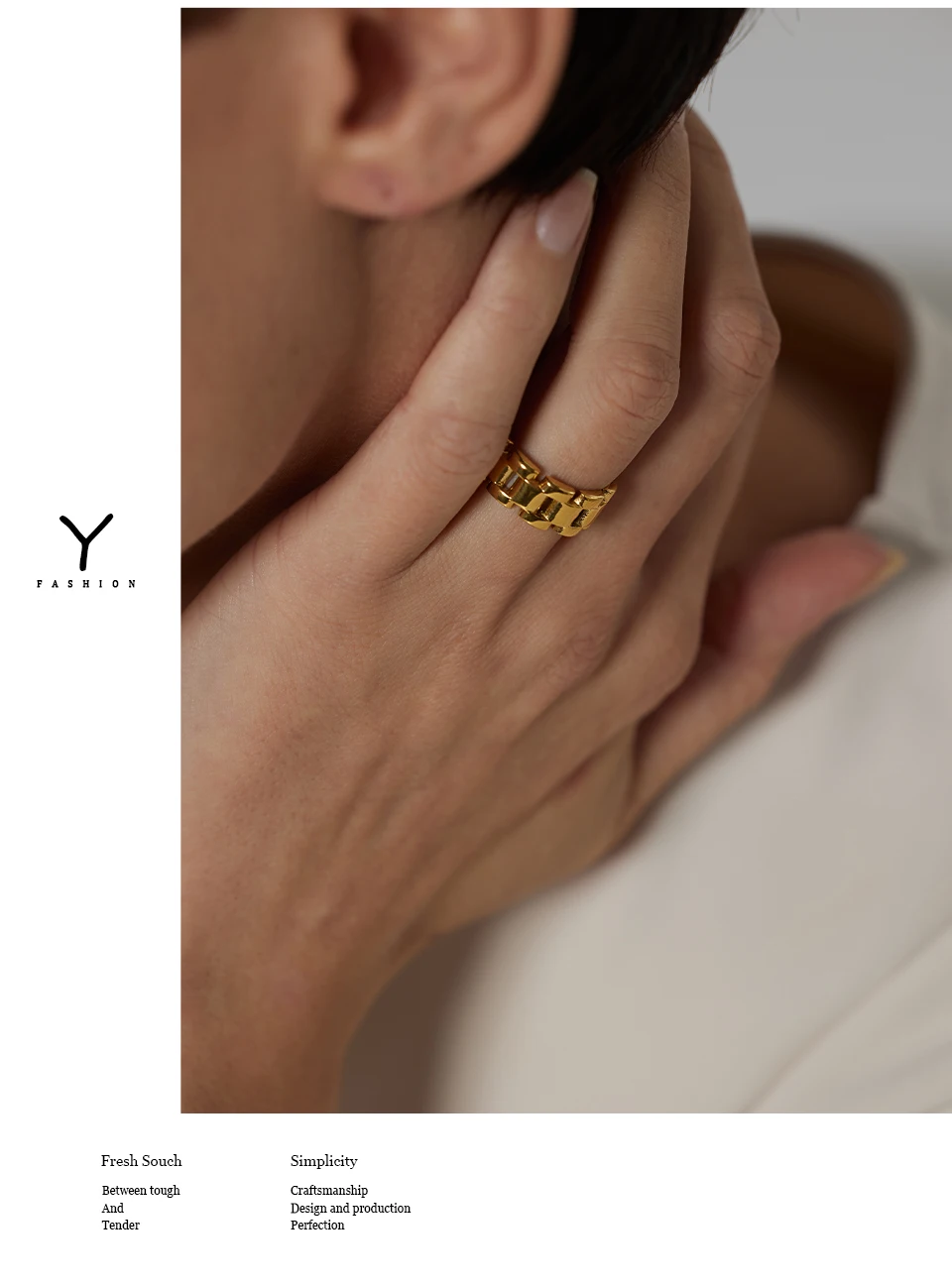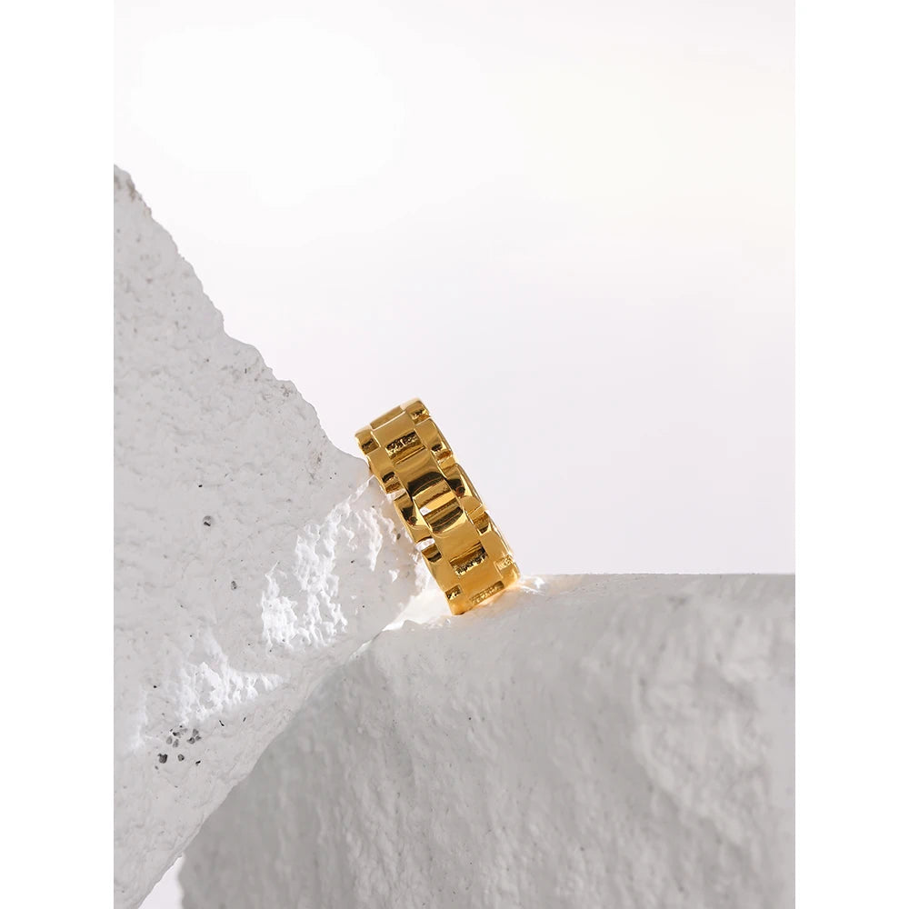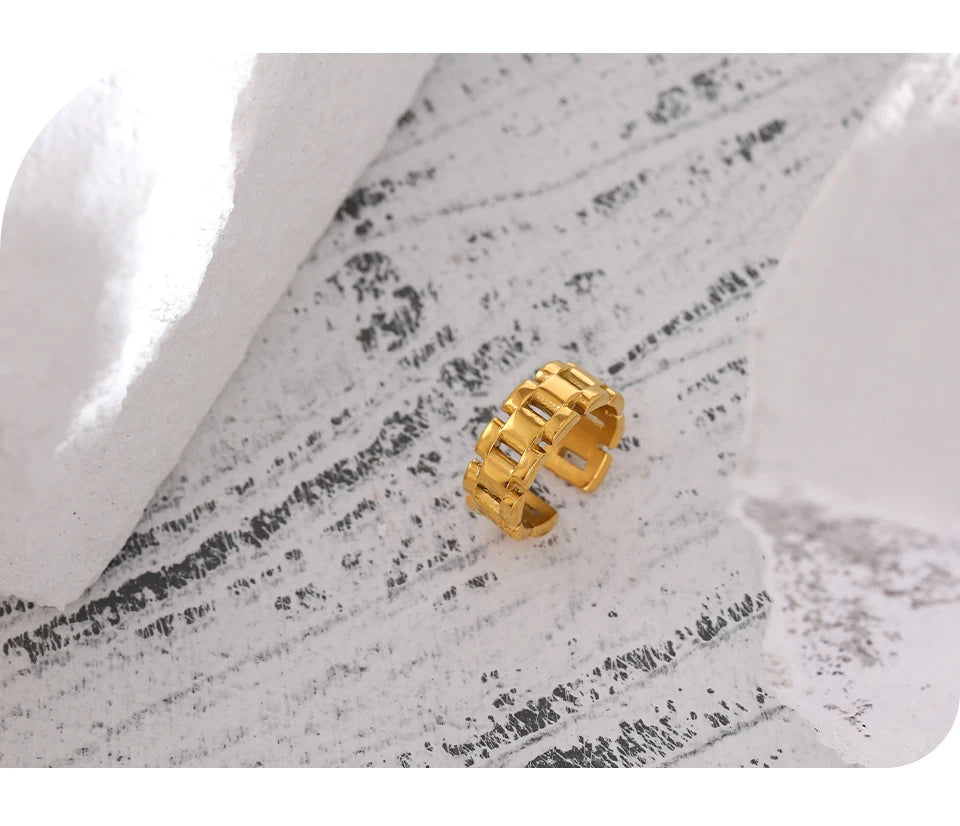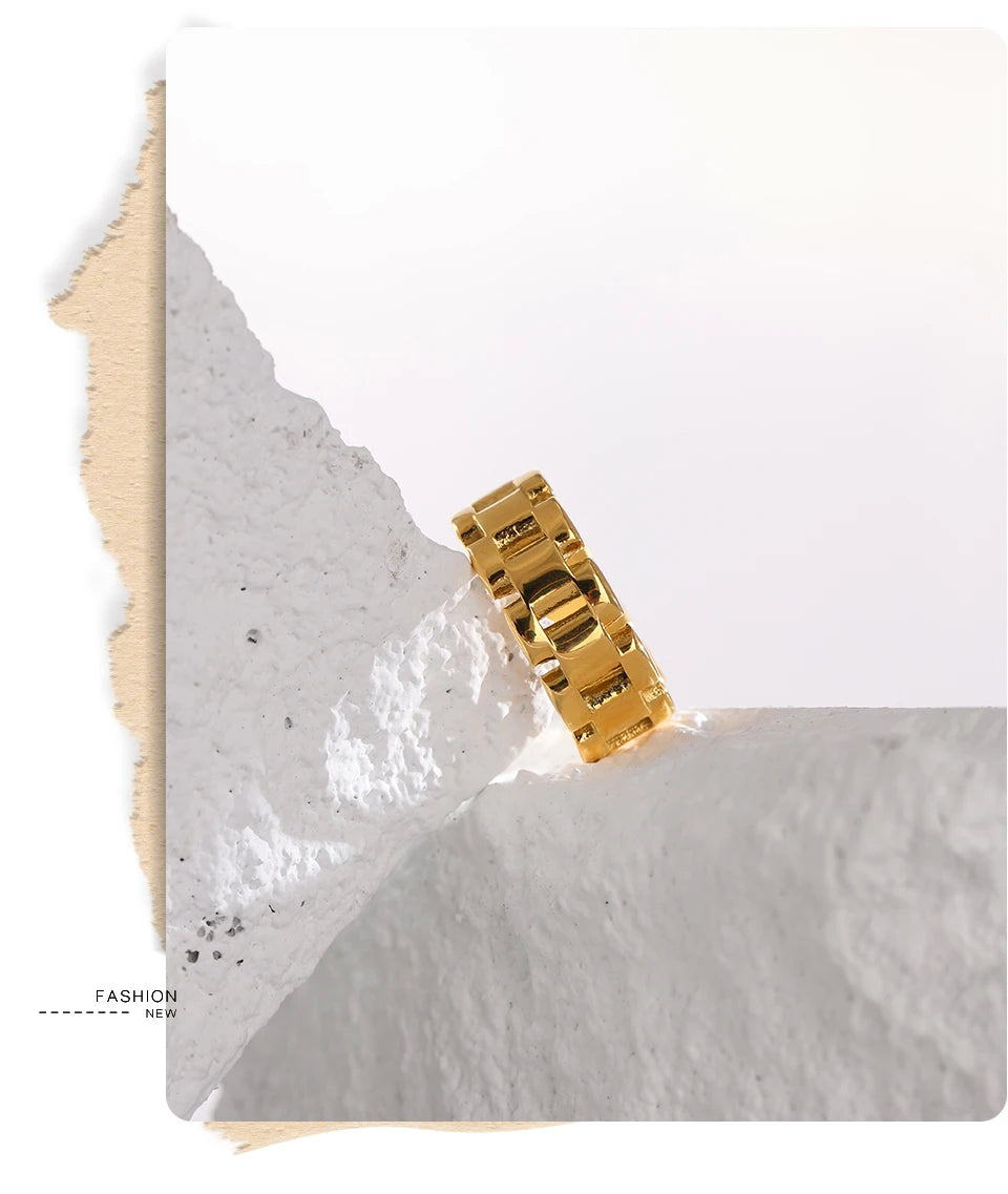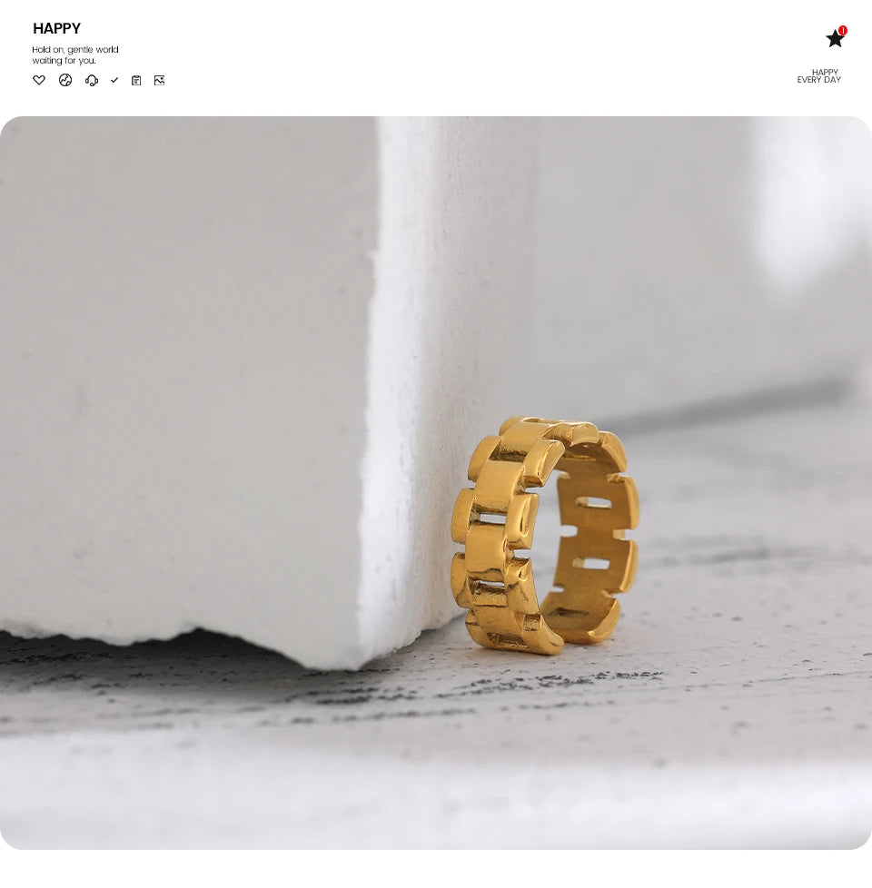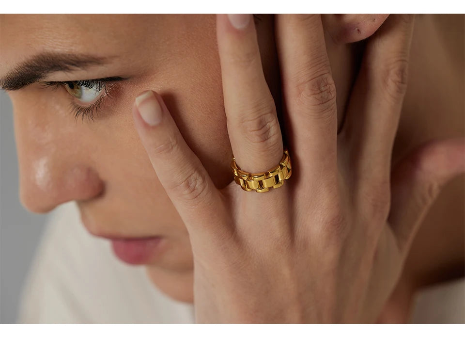 Yhpup Stainless Steel Jewelry Charm Metal Golden Chain Ring for Women High Quality 18 K Rope bague acier inoxydable Waterproof